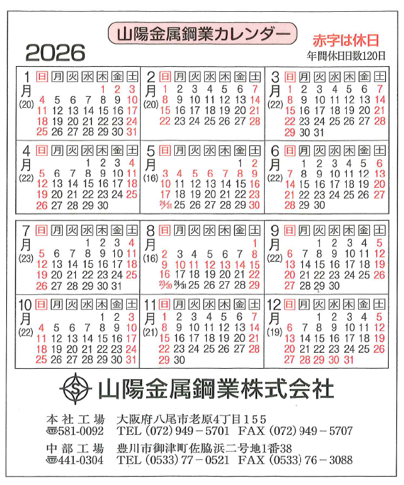 令和8年度の当社の年間休日をお知らせいたします。